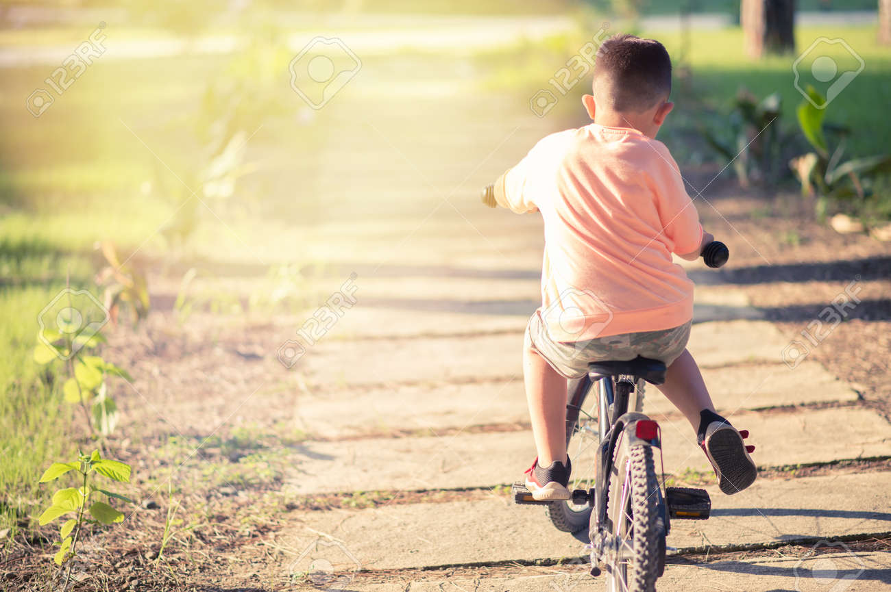 Child On A Bicycle In Nature Boy Cycling Outdoors On Sunny Day