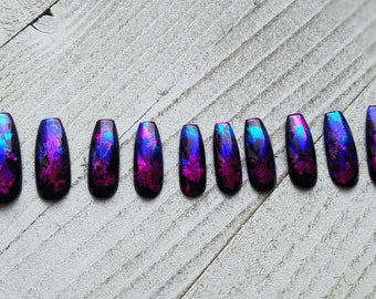 Matte Black Deep Purple Fake Nails Press On Glue On Nails Different Shapes